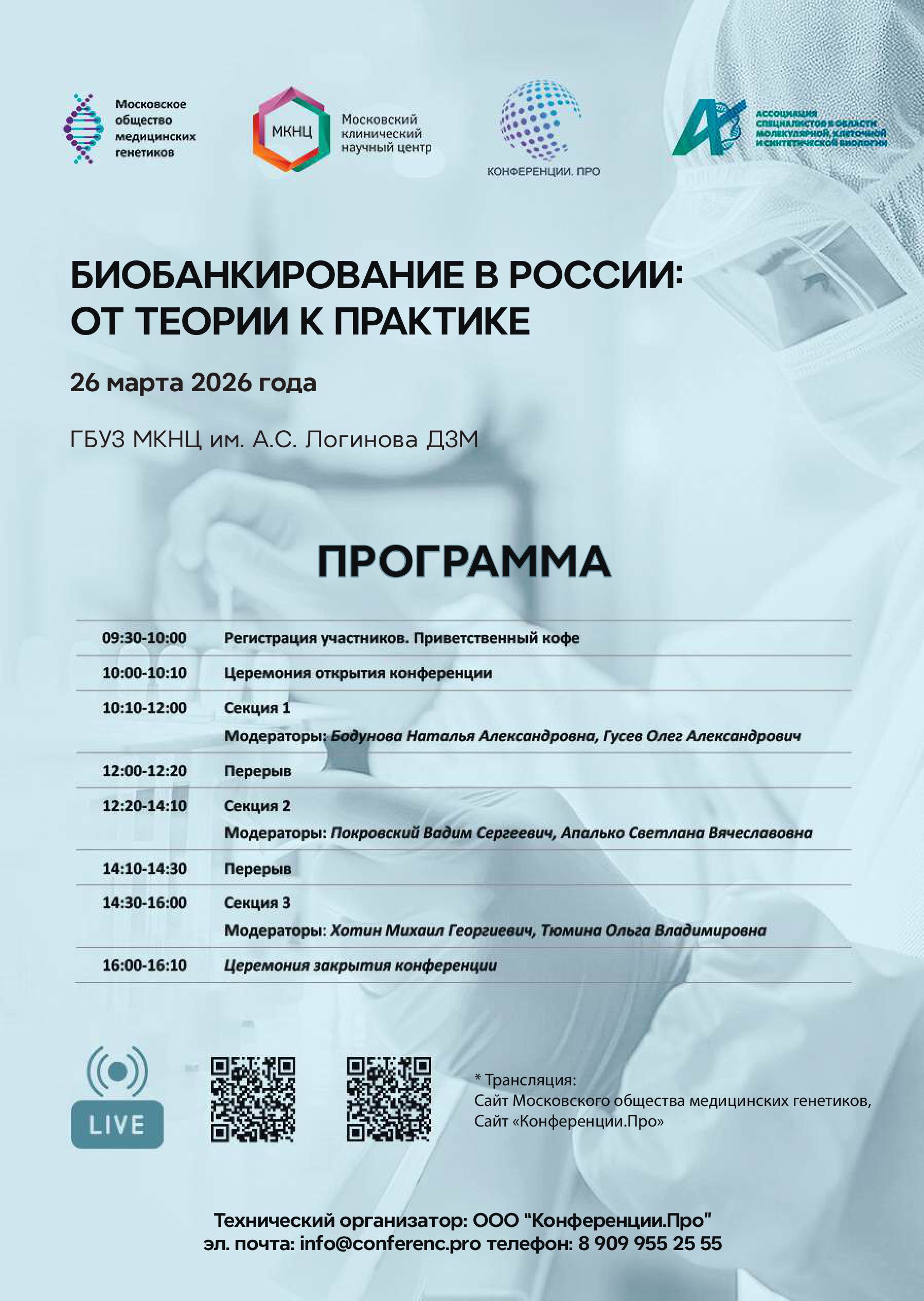 26 марта 2026 года ООО «Криотек» приглашает посетить онлайн трансляцию Московского общества медицинских генетиков "Биобанкирование в России: от теории к практике".