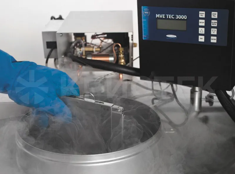 The MVE High Efficiency 800 series cryopreservers provide storage of biomaterials in liquid nitrogen vapors at a temperature of -190°C. Available in three unique sizes, they provide maximum sample density and long storage time.